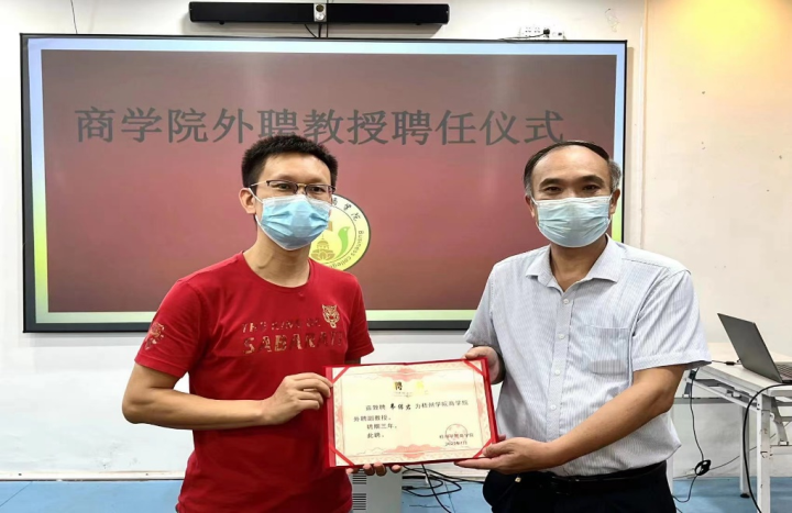 在第三阶段的商学院外聘教师聘任仪式上,叶毅副院长为梧州电商协会会长冯世勃、梧州新媒创客基地执行董事长韦保君颁发了商学院外聘教师聘书。最后,校企双方与师生代表一起就梧州学院电子商务专业人才培养方案进行了深入的讨论,提出优化课程设置等改进意见。双方还就未来合作推进实践基地建设、共同开发新媒体营销优质课程等校企合作项目进行探讨。