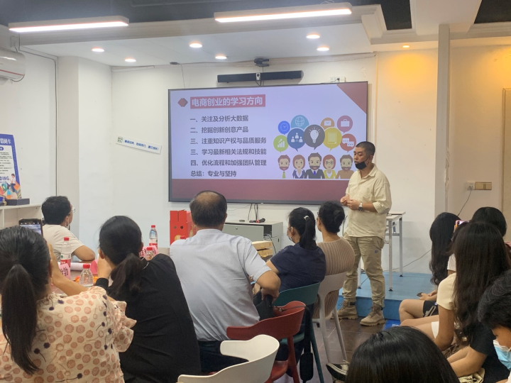 接着,由梧州市电子商务协会会长兼梧州泰便利贸易有限公司董事长冯世勃,就公司实践经历做了精彩的跨境电商经验分享,使到场的各位师生受益匪浅。