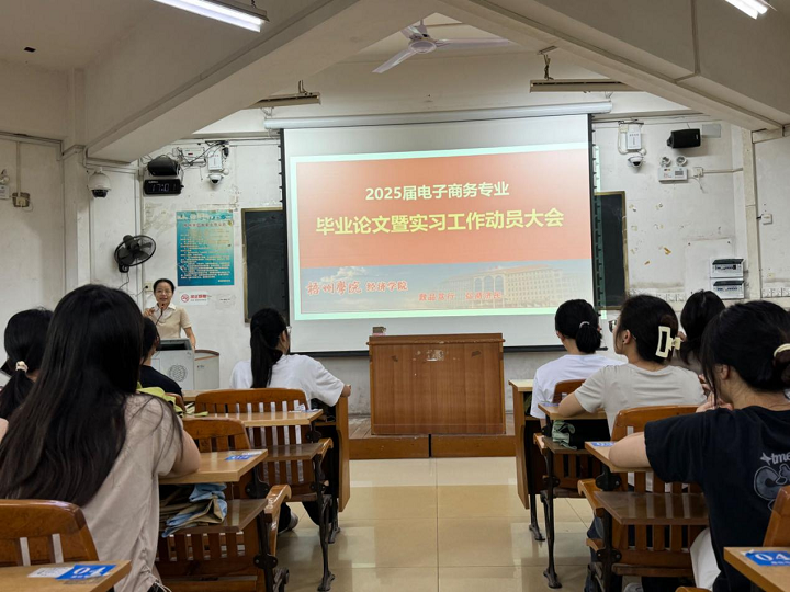 6月5日下午,梧州学院经济学院2025届电子商务专业毕业论文暨实习工作动员会在明理楼S603顺利举行,会议由电子商务教研室主任黄冰毅老师主持,2025届电子商务专业全体学生参会。