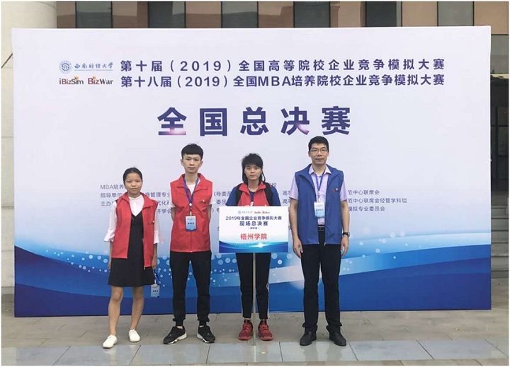 2019年4月27日第十届全国高等院校企业竞争模拟大赛总决赛在西南财经大学拉开帷幕。本次大赛从3月18日起进行全国初赛,报名队伍2249支,国内外238所高等院校超过11245名师生参与。梧州学院学生经过初赛、复赛、半决赛的角逐,最终与来自中国科学技术大学、西南大学、西南交通大学、西南财经大学等国内高校的94支队伍和来自尼泊尔特里布文大学的2支队伍会师全国总决赛。经过总决赛一共7期的较量,梧院学生在高校组总决赛的60支高校组队伍里表现突出,赢得本届企业竞争模拟大赛全国一等奖,为梧州学院赢得了荣誉。