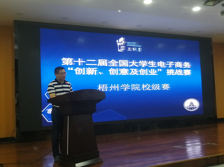 2022年4月14日,由商学院院承办的第十二届全国大学生电子商务“创新、创意及创业”挑战赛校内选拔赛,在梧州学院体育馆负一楼路演大厅成功举行。根据大赛的规则,本次校级赛邀请了校外专家参与,他们是梧州市轻工业研究所所长兼梧州市科技创业服务中心主任苏炜、梧州新媒创客基地执行董事韦保君、梧州小蚁人网络科技有限公司总经理唐军。校外企业专家与校内专业教师共同担任比赛评委。本次大赛受到企业的关注,广西梧州高创科技企业孵化器有限公司董事长、高新区创业服务中心主任何敏怡、梧州高创科技企业孵化器有限公司培训策划部部长钟海霞、梧州新媒创客基地的直播电商经理杨龙及抖音项目经理、梧州美食部落负责人韦晓妤也作为点评嘉宾参加了比赛活动。梧州学院商学院副院长叶毅在大赛开幕时致辞,电子商务教研室主任黄冰毅负责大赛的相关组织工作。