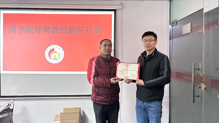 叶毅副院长为梧州市网商商会会长郎建东颁发续聘书