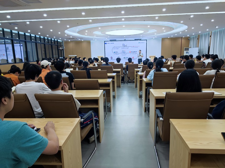 6月5日下午,捷佳润科技集团股份有限公司董事长、总经理温标堂在明科楼11楼会议室为经济学院数字经济教研室教师、2023级数字经济专业学生作了题为“AI赋能未来农业”的专题讲座。讲座由经济学院院长杨诚主持。经济学院120余名师生参会。